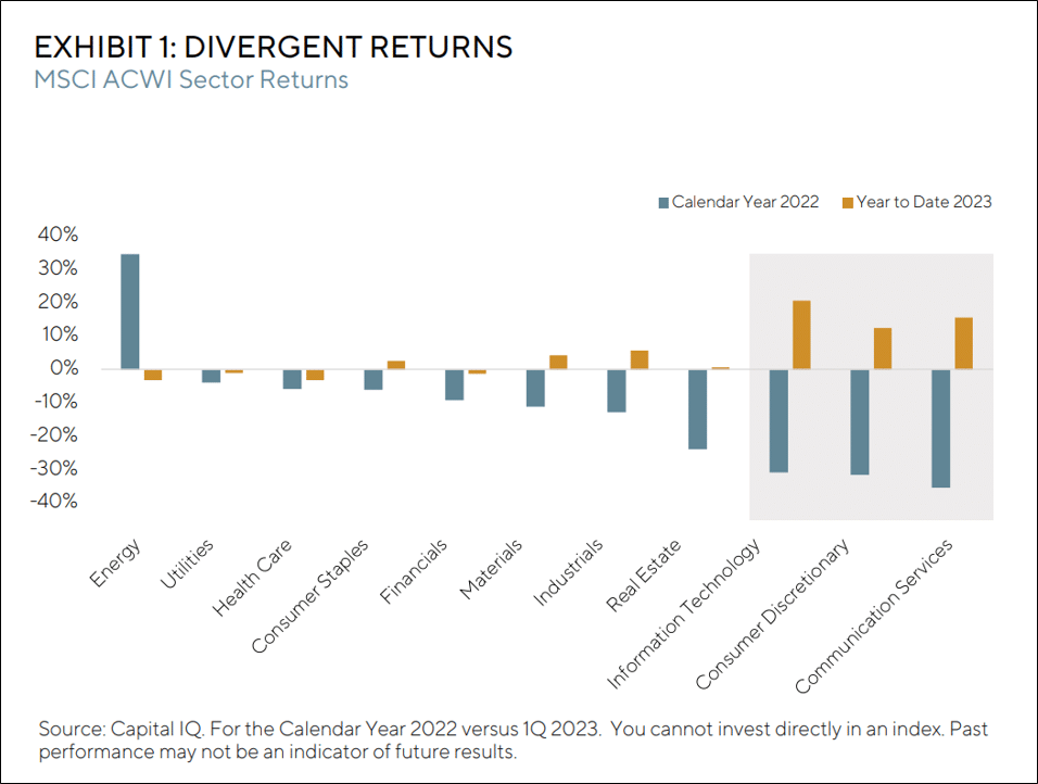 However, valuations for several technology franchises have since declined. In addition, we believe the “overearning” that occurred during the pandemic re-based to more realistic levels and earnings expectations normalized to pre-COVID trends. As a result, we increased our exposure to the technology sector during 1Q 2023.